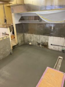 左官仕上げで強度と清掃性の高い床に仕上げ ています。